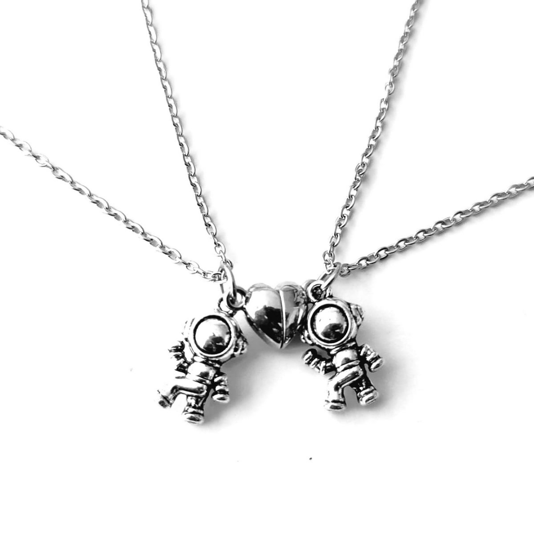 Sorprende a tu persona especial con este collar de astronautas magnético , el accesorio ideal para novios o mejores amigos que desean llevar siempre un símbolo de unión y amor.