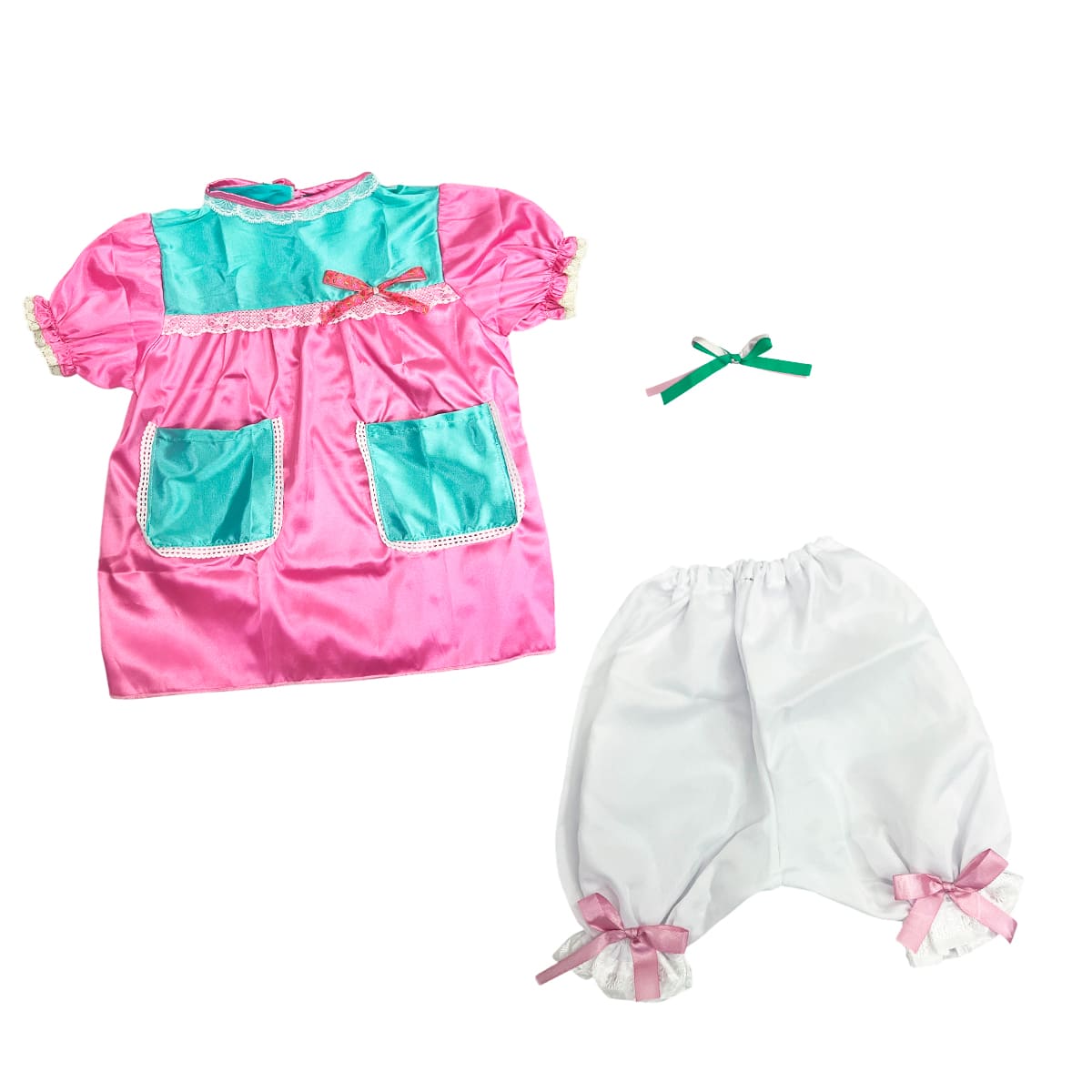 👓 Incluye vestido con volantes, pantalón característico y lazos para el pelo.