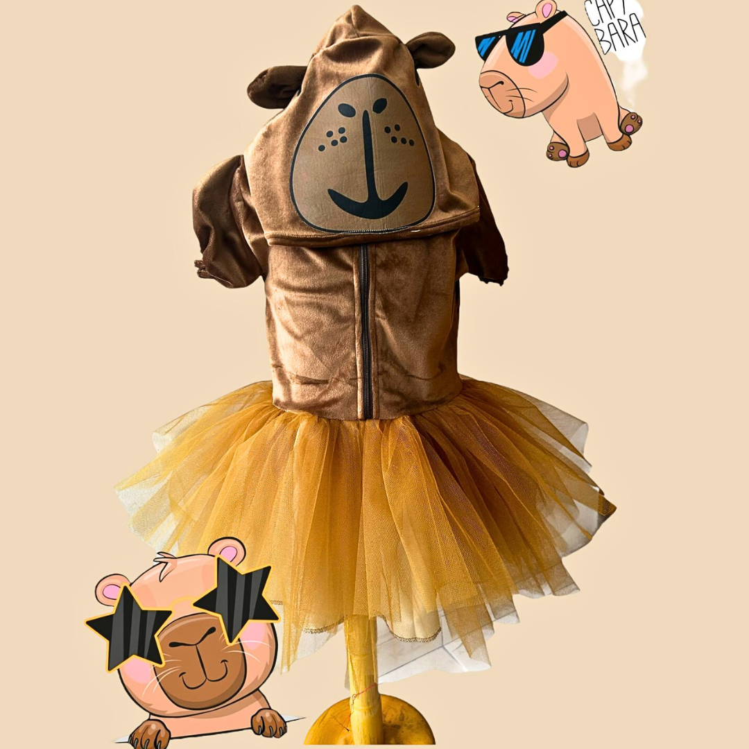 Haz que tu pequeña brille con este adorable disfraz de capibara, inspirado en uno de los personajes más queridos y divertidos. Perfecto para Halloween, fiestas temáticas o presentaciones escolares.