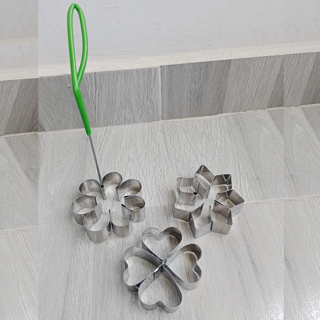 Set de 3 moldes metálicos ideales para preparar las tradicionales solteritas u otras delicias fritas. Fabricados en lámina de aluminio, resistentes, livianos y fáciles de limpiar.