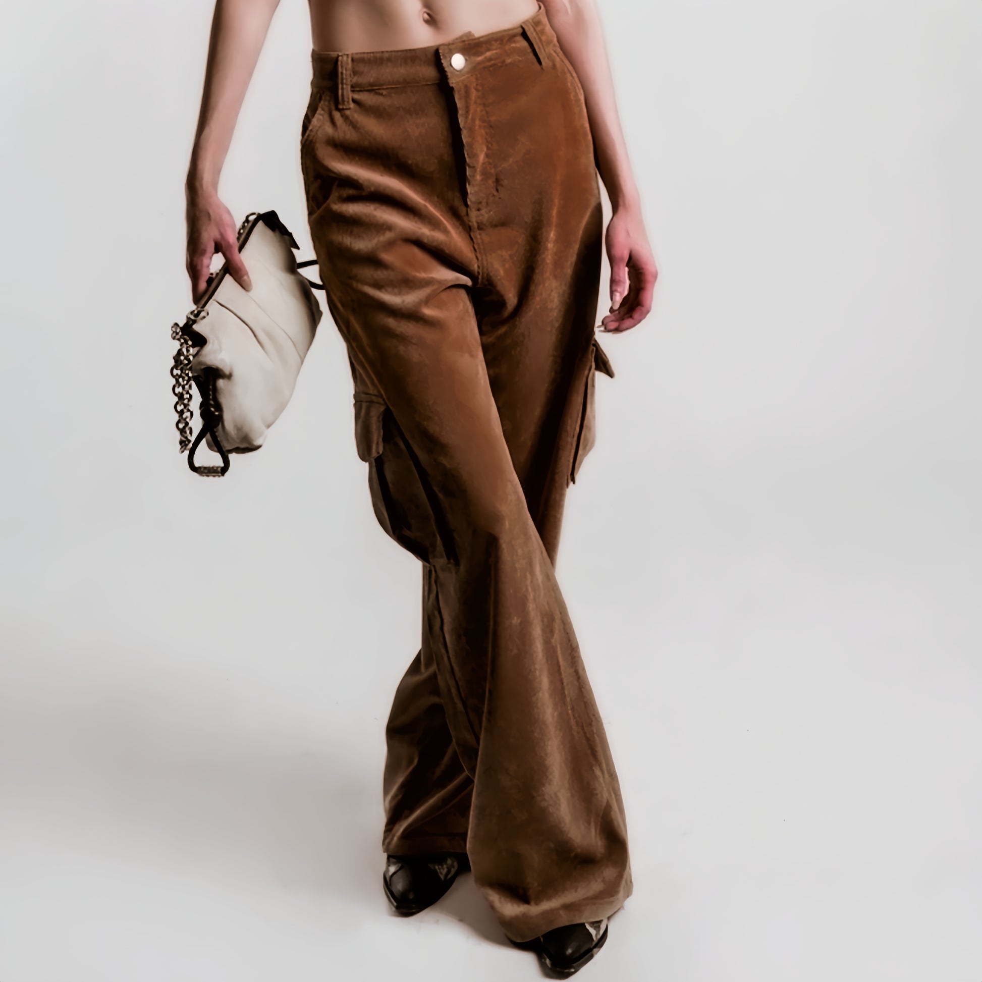 Pantalón Cargo CAFE en Pana Acanalado para Dama